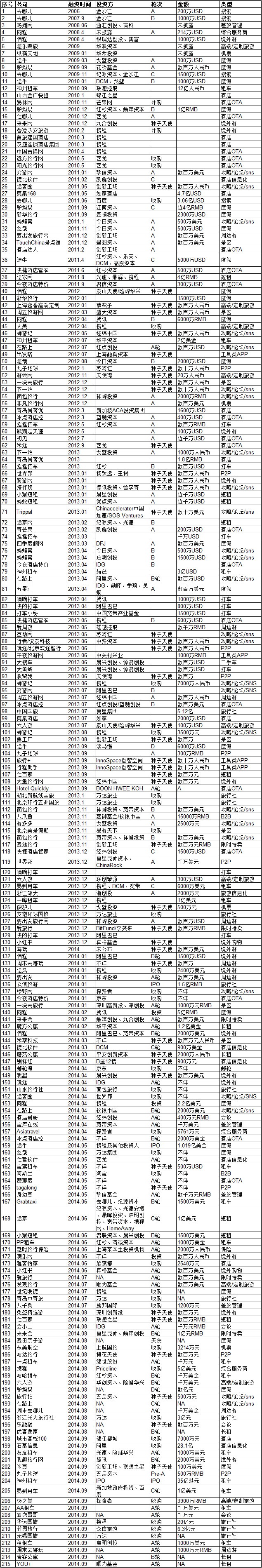附件:《2006-2014年9月30日中國在線旅游行業投資事件盤點》,以下為部分內容,全部內容請 點擊此處 查看。