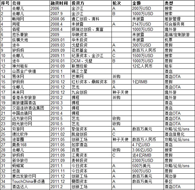 筆者統計(ji)了自2006年以來在線旅(lv)(lv)游行(xing)業的(de)215起(qi)融(rong)資(zi)事件(jian),統計(ji)發現(xian),從2011年開(kai)始,也就是(shi)移動(dong)互聯(lian)網浪潮興盛開(kai)始,在線旅(lv)(lv)游的(de)投資(zi)案(an)例呈突飛猛進增長。2011-2014年1-9月,融(rong)資(zi)事件(jian)分別為16、23、68、85起(qi)。